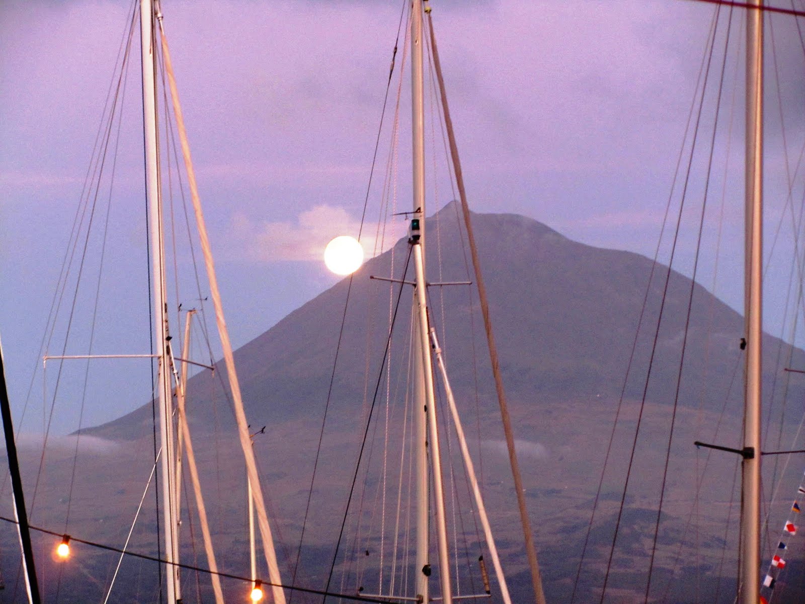 | A lua ao lado do ponto mais alto de Portugal ilha do Pico |